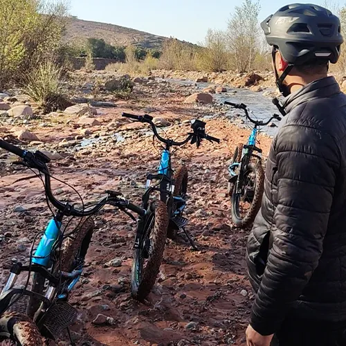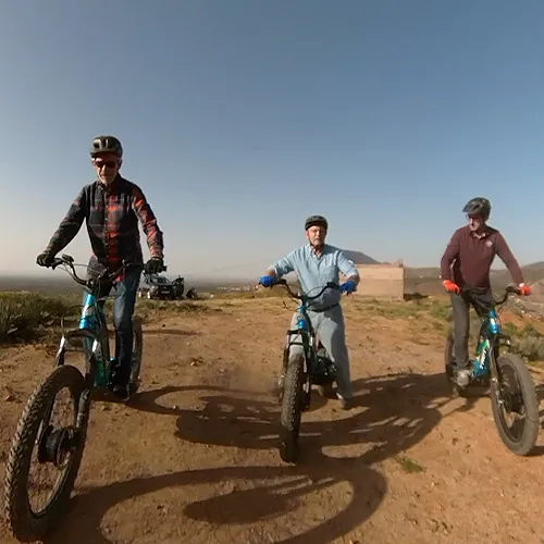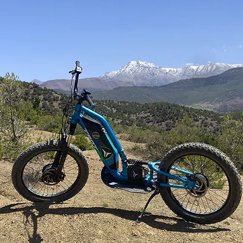 Débutant, amateur de sensations ou simple curieux, le E-Scooter s’adapte à ton niveau. Grâce à sa double motorisation électrique, tu franchis les reliefs de l’Atlas facilement, sans pédaler, tout en gardant la maîtrise. Tu roules à ton rythme, accompagné par un guide qui t’encadre et t’oriente tout au long du parcours.