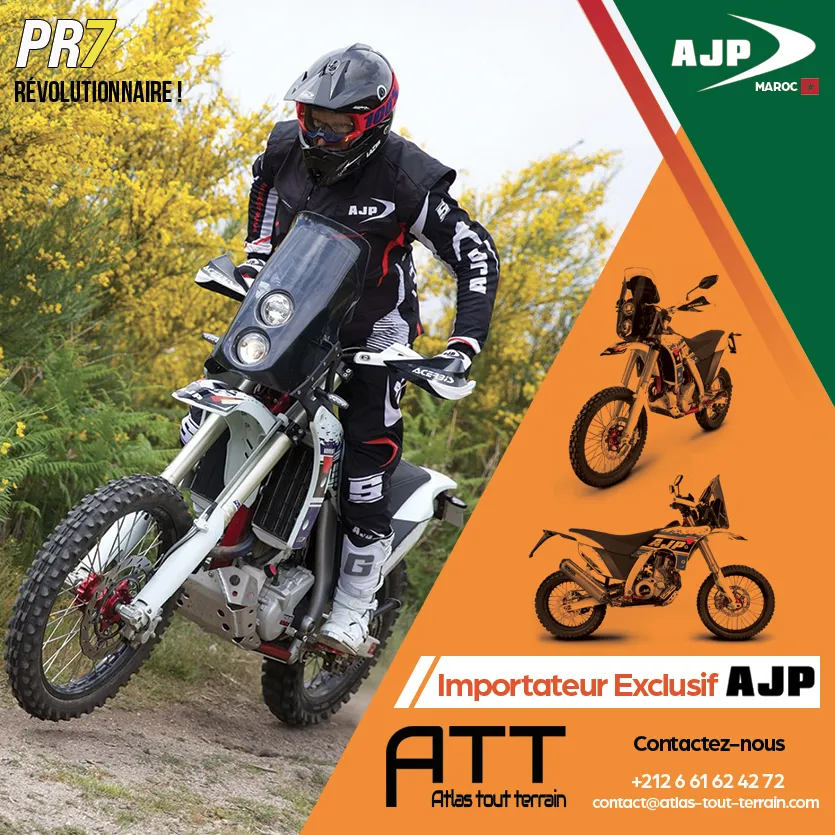 La PR7 650 d'AJP redéfinit ce qu’une moto d'aventure peut accomplir. En combinant une technologie avancée, un design soigné, et une puissance brute, elle offre une expérience inégalée aux passionnés de moto. Que vous soyez un aventurier chevronné ou un amateur de longues balades, cette moto est conçue pour vous emmener au-delà de l’horizon.
